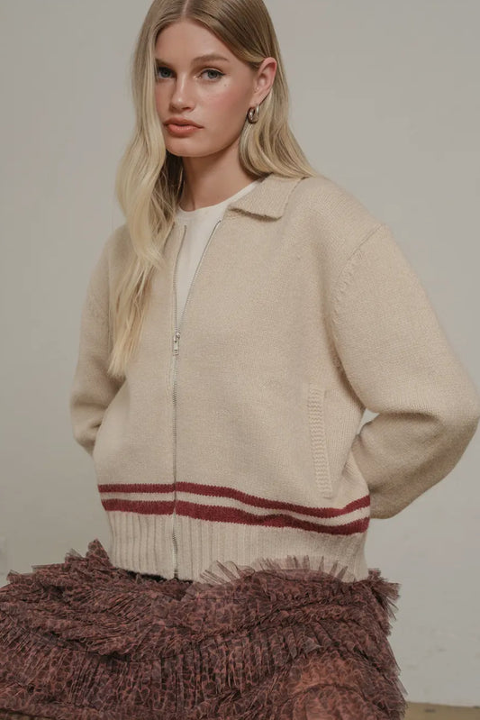 Varsity Zip-Up - Oatmeal & Wine Stripe