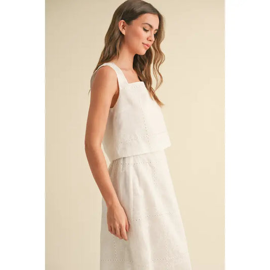 Eyelet Detail Sleeveless Top - White