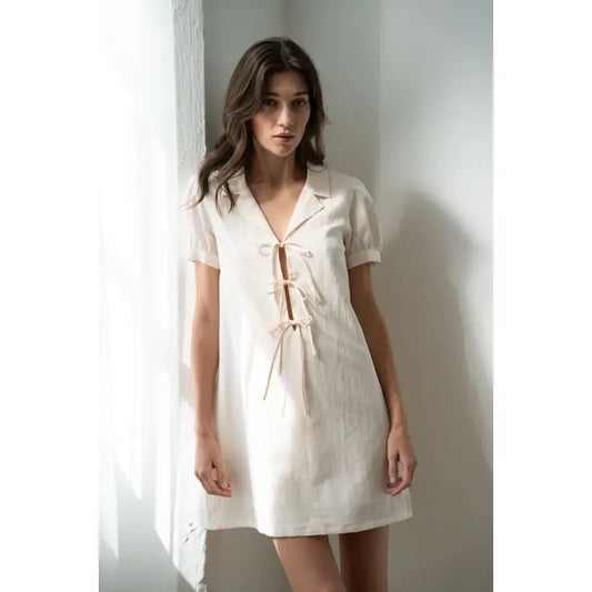 Tie-Front Collared Short Sleeve Mini Dress