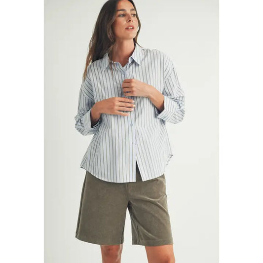 Loose Fitted Button Down - Baby Blue Stripe