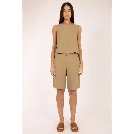 Crew Neck Sleeveless Top - Olive