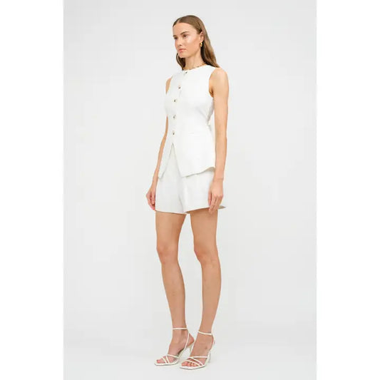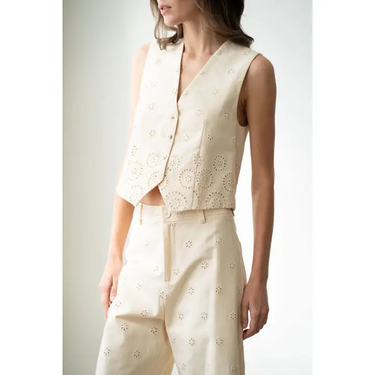 Eyelet Fitted Tailored Vest - Cream