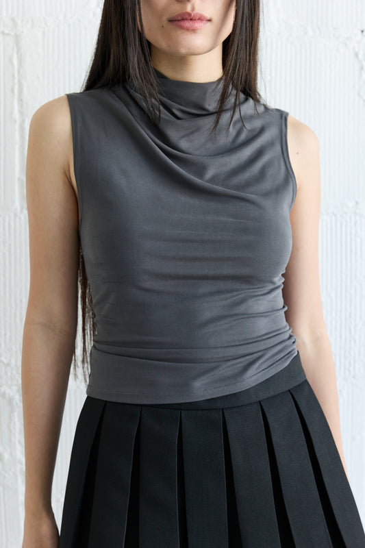 Cropped Acid Wash Crew Neck Sweatshirt - Pebble Grey