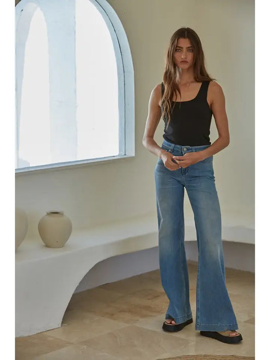Basic Cropped Capped Sleeve Tee - Cloud Blue