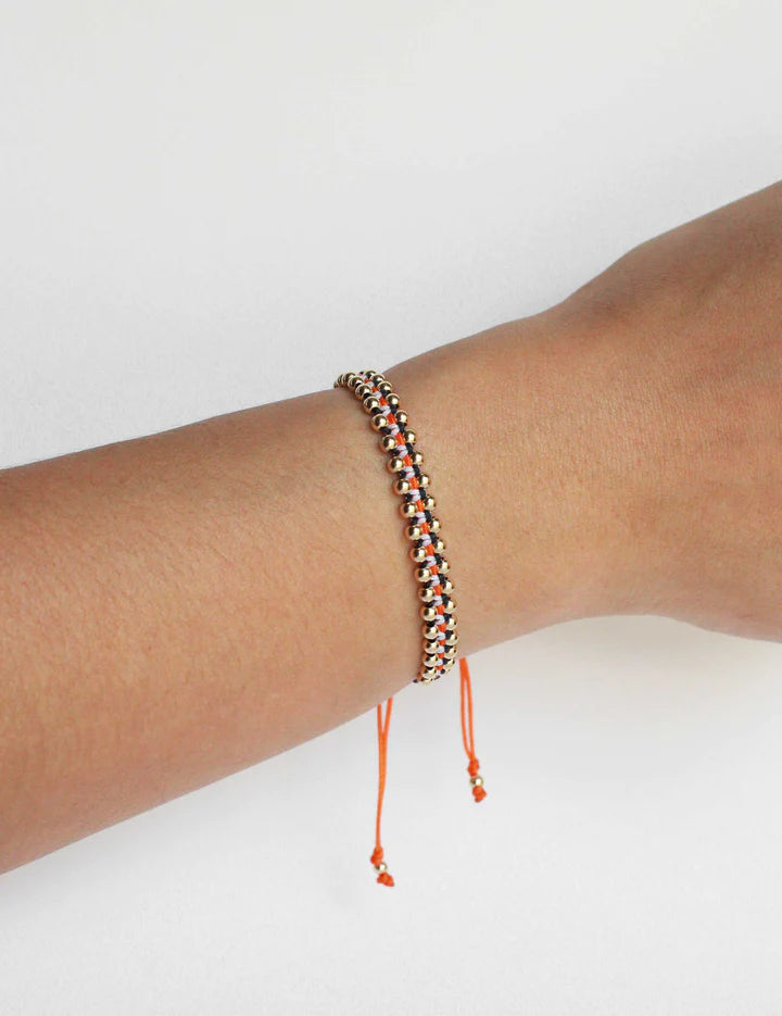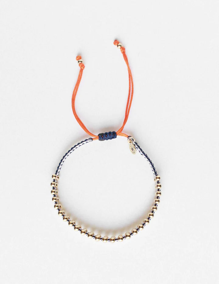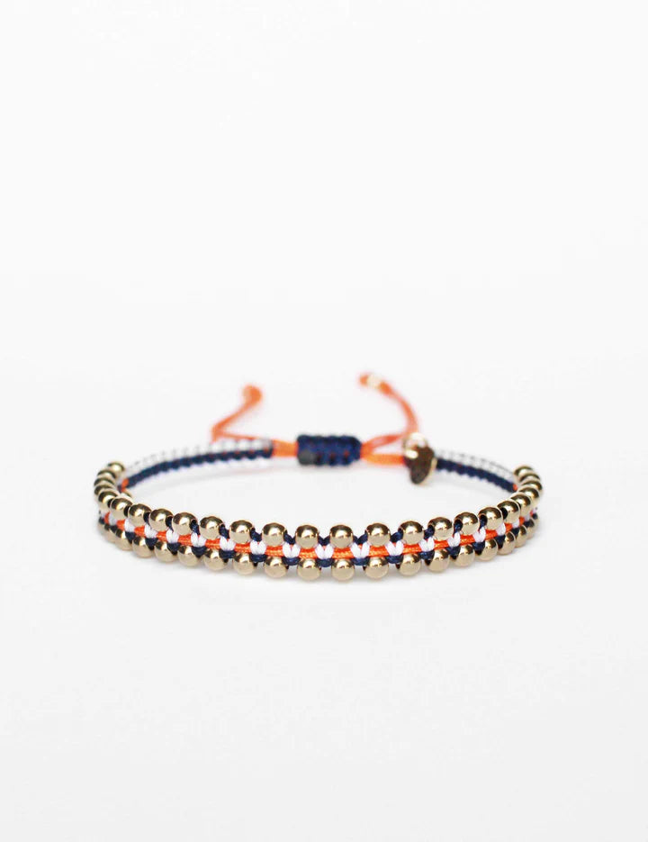 Take us out to the ball game! Our hometown's baseball team and one of our best selling bracelets come together. Made with tarnish resistant 18k Gold Filled beads and a carefully handwoven tricolor thread.