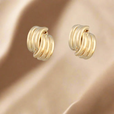 Crafted with 18K gold, these stunning Attached Layered Knot Earrings add an elegant touch to any outfit. Featuring a beautiful stud design, these earrings make a sophisticated statement that is sure to turn heads. Elevate your style with these timeless golden earrings.