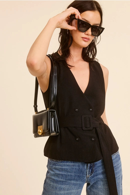 Belt Buckle V-Neck Vest - Black
