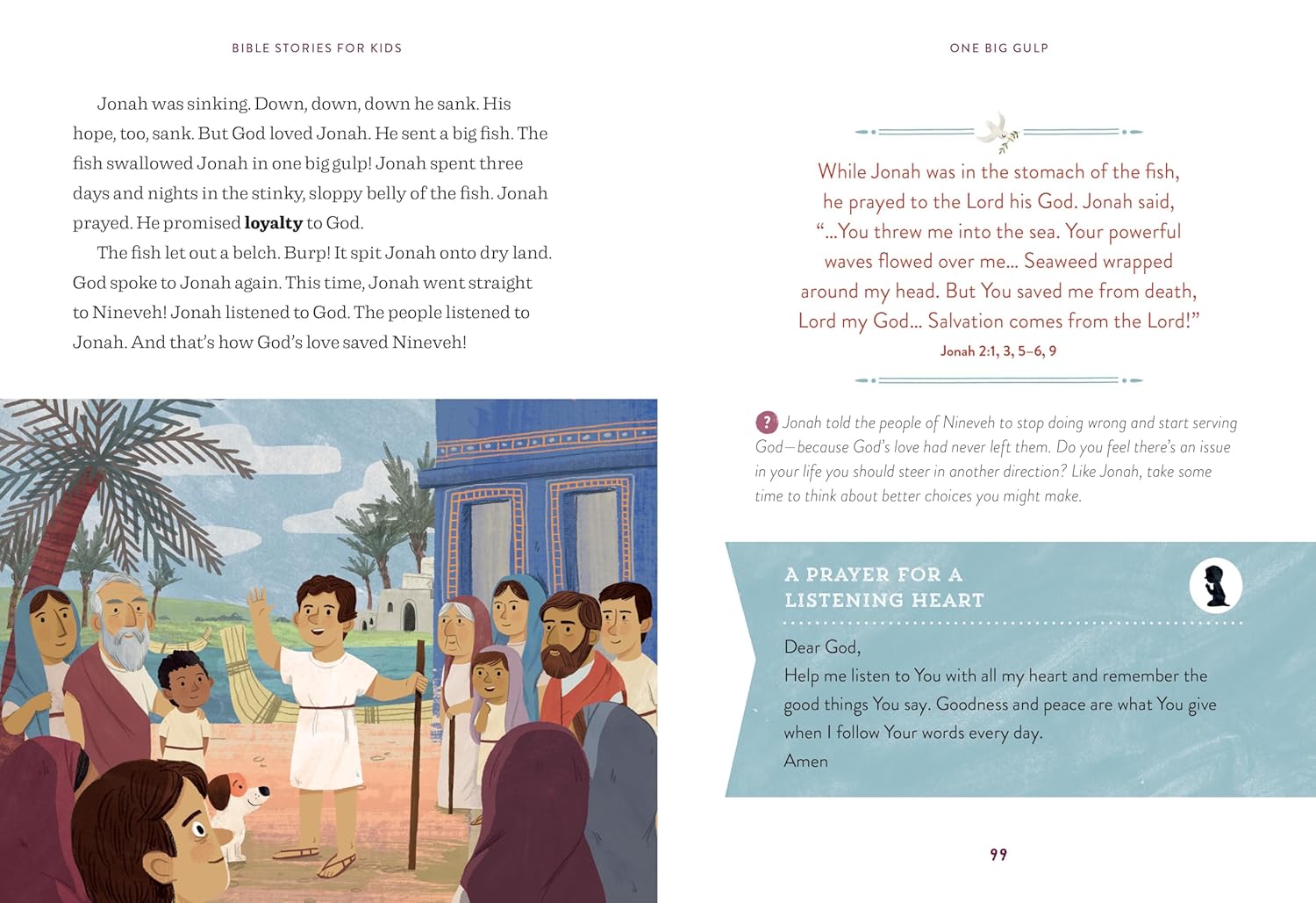 Share lessons you've learned―Teach lasting lessons from the Bible with prayers, Scripture, and kid-friendly discussion questions that go along with each story.