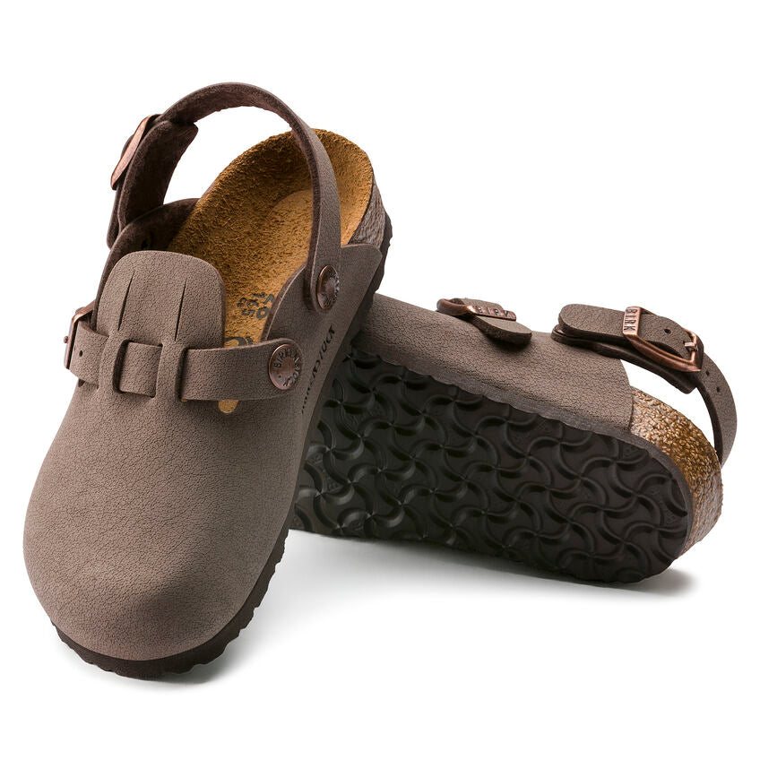 The BIRKENSTOCK Kay is a classic clog featuring a convertible backstrap with a buckle closure that can swivel back for a more secure fit. The upper is made from the skin-friendly, hard-wearing synthetic material Birkibuc.