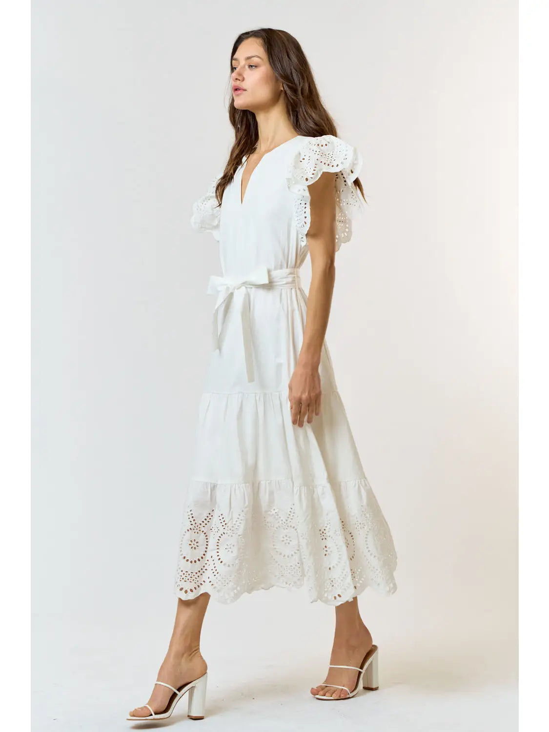 Cotton Eyelet Scalloped Midi Dress - Off White