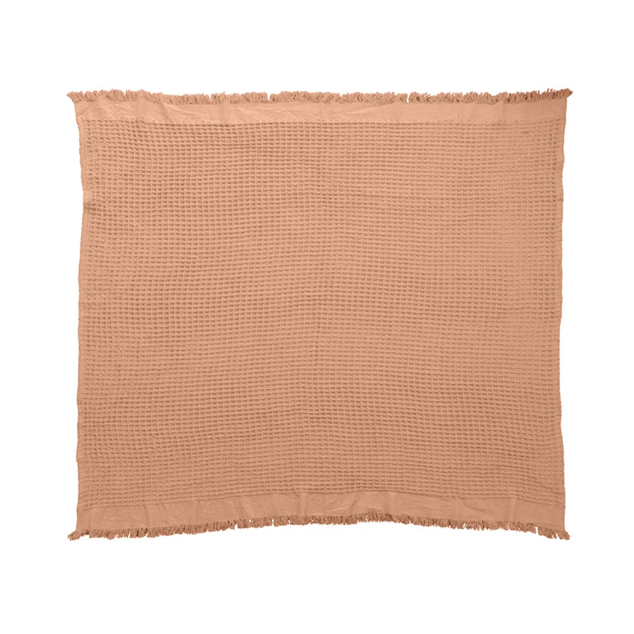 Cotton Waffle Weave Throw Blanket with Fringe