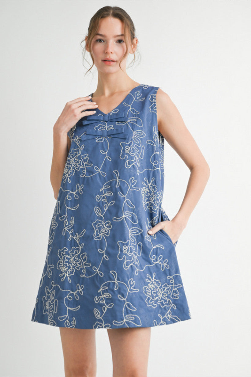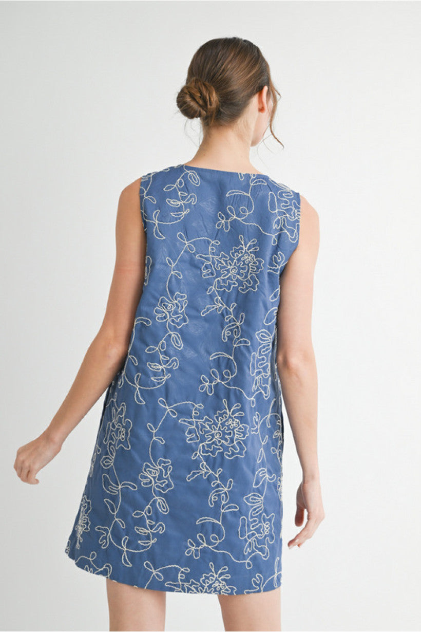 This Floral Embroidered Dress in Blue adds a touch of beauty and charm to your wardrobe. With its flattering fit and intricate floral embroidery, it's the perfect choice for any occasion. Whether you're headed to a rodeo or a fun day out, this dress is sure to make you look cute and stylish.