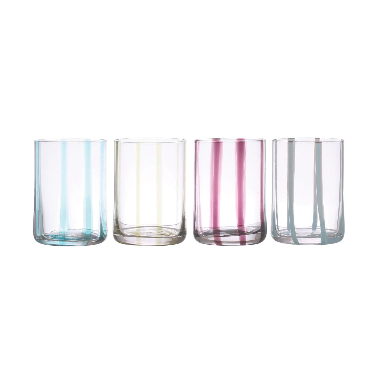 Add a touch of elegance to your home with our Hand-Painted Striped Drinking Glass. Each glass is uniquely beautiful and makes a perfect addition to any collection. Makes for a thoughtful and sophisticated gift.