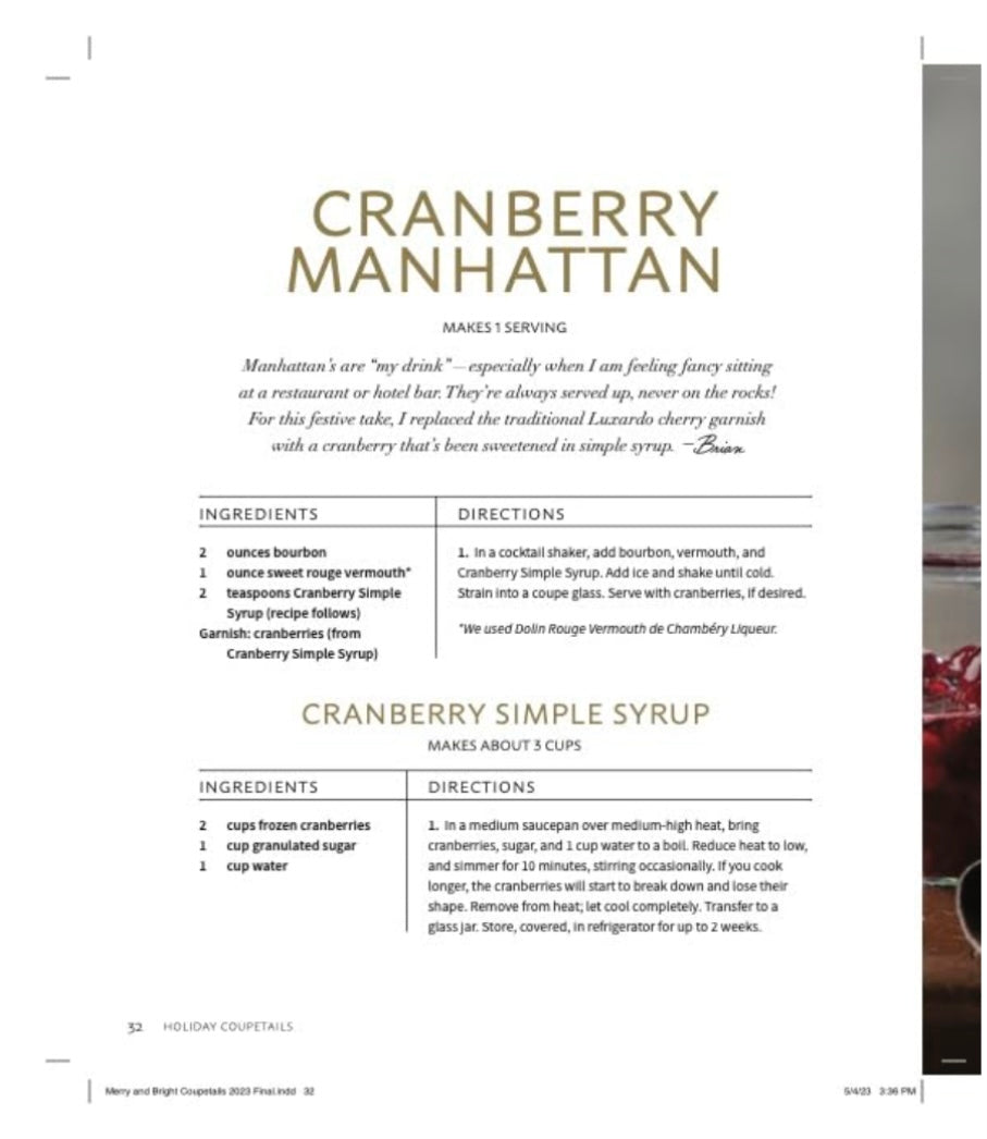 In addition to favorite drinks inspired by Brian and Brooke's international travel and memories with family and friends, Holiday Coupetails also offers appetizers and desserts to keep your holidays merry and bright. From warm, cozy drinks perfect for sippin while sitting by the fire to big batch cocktails and hors d'oeuvres ideal for lively holiday festivities, this book will have you saying, "let's eat, drink, and be merry!"