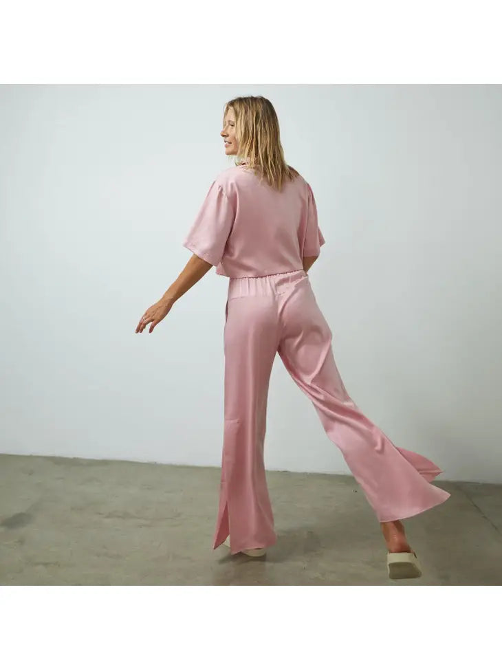 Lunya - Washable Silk High Rise Pant Set - Serene Pink