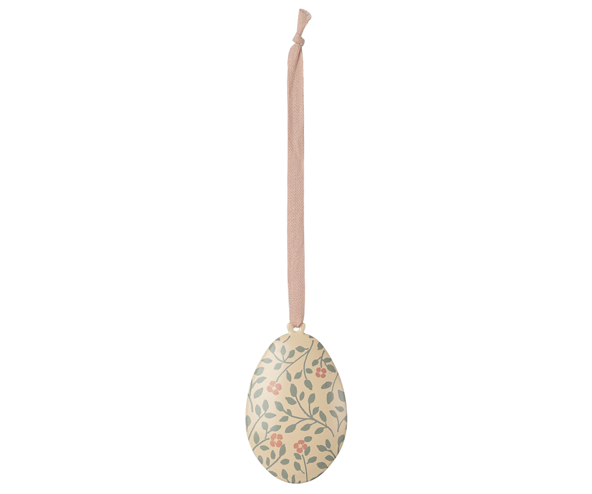 Metal Easter egg ornaments with all over flower print. They look beautiful on a branch as decoration on the Easter table. Mix the different colours with other Maileg Easter ornaments to complete your decoration.