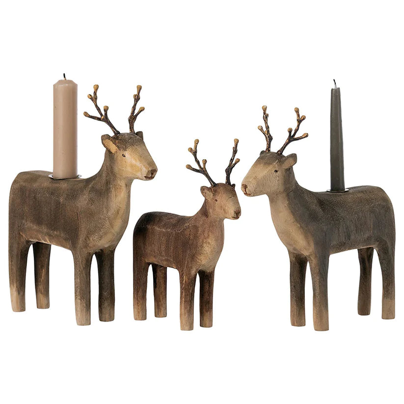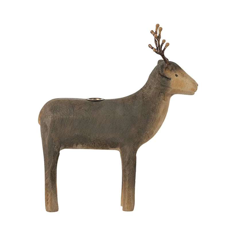 Elevate your festive decorations with our exquisite Maileg Medium Reindeer Candle Holder. Expertly crafted, its intricate design brings a touch of holiday magic to any space. Standing at a graceful height of 6.69 inches and boasting a width of 7.48 inches, this candle holder makes for a stunning centerpiece or an enchanting addition to your holiday collection.
