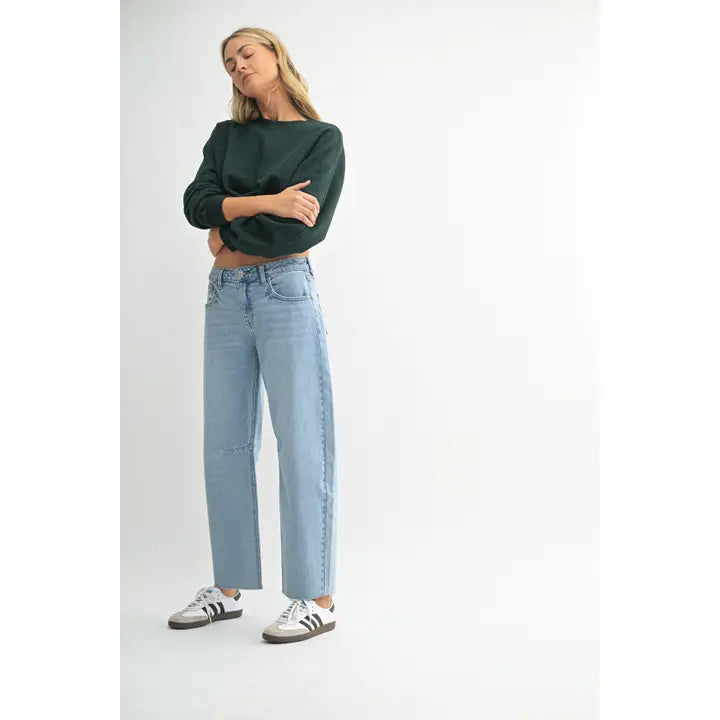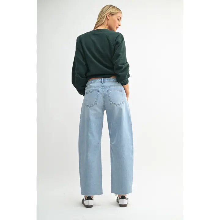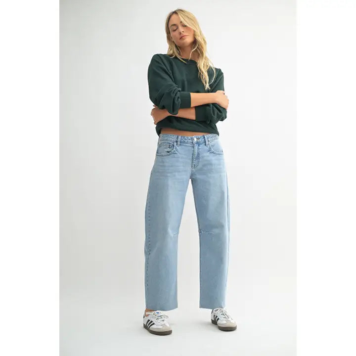Experience the perfect blend of style and comfort with our Mid Rise Barrel Jean. Made with lightweight denim, these jeans are designed to provide a cute and trendy look without compromising on comfort. Elevate your wardrobe with this new addition today.