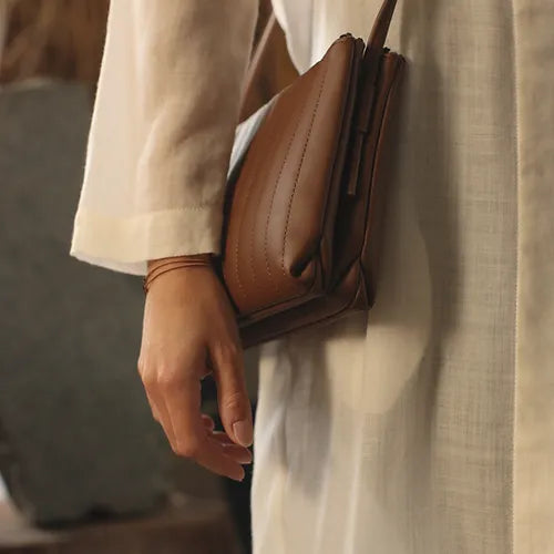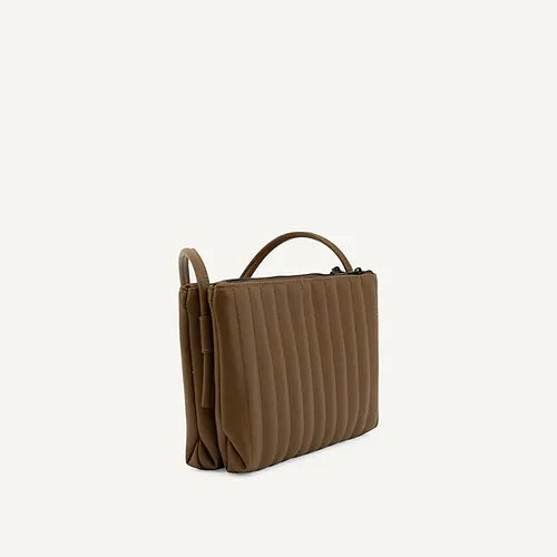 An oak shoulderbag with two compartment combined. Made of high quality padded vegan leather, with black YKK zipper and a linen lining. Inside you find an extra pocket to store some small items.
