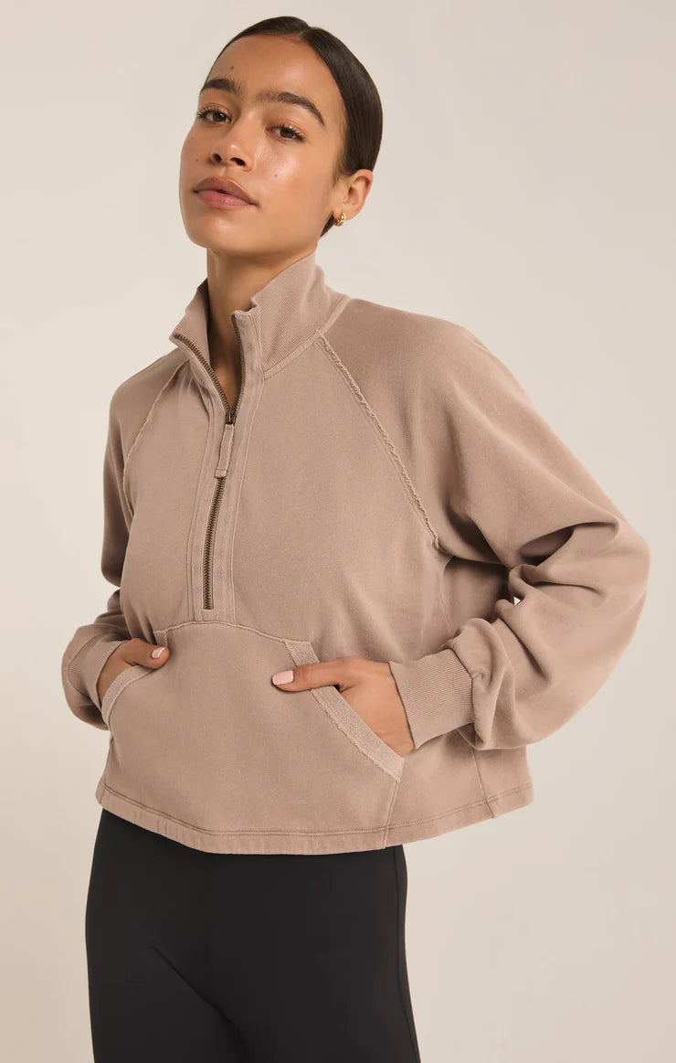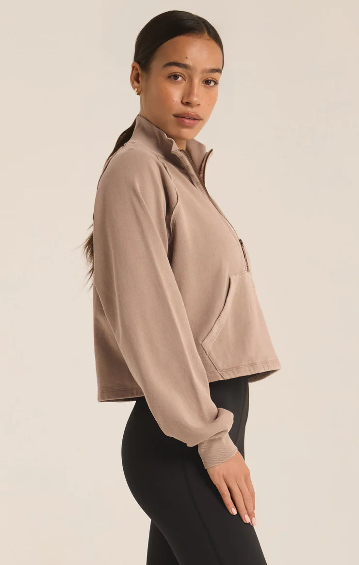 On The Run Half Zip Sweatshirt - Latte