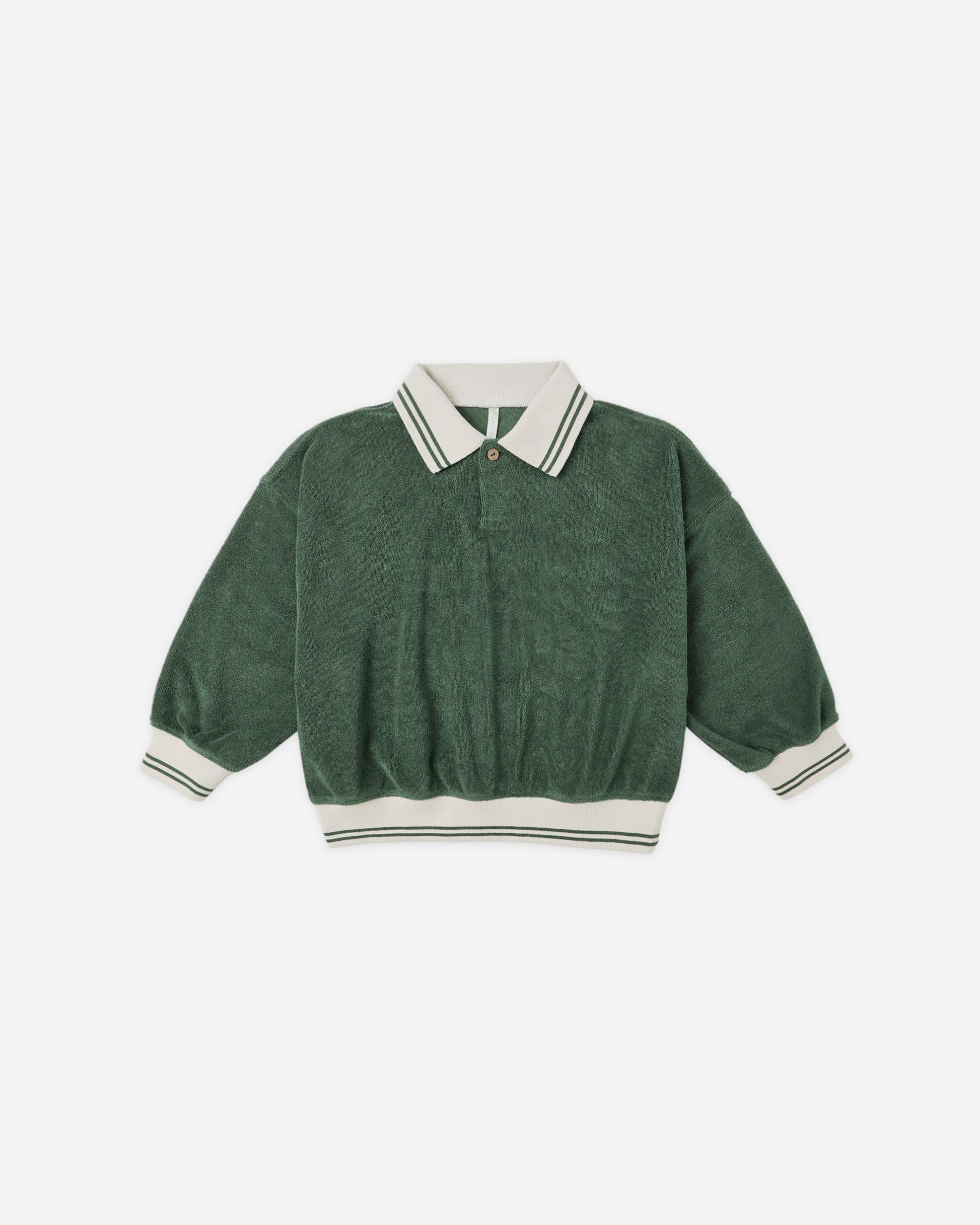 Relaxed-fit sweatshirt featuring coconut button detailing and contrast collar, cuffs, and hem for a classic collegiate-inspired look.