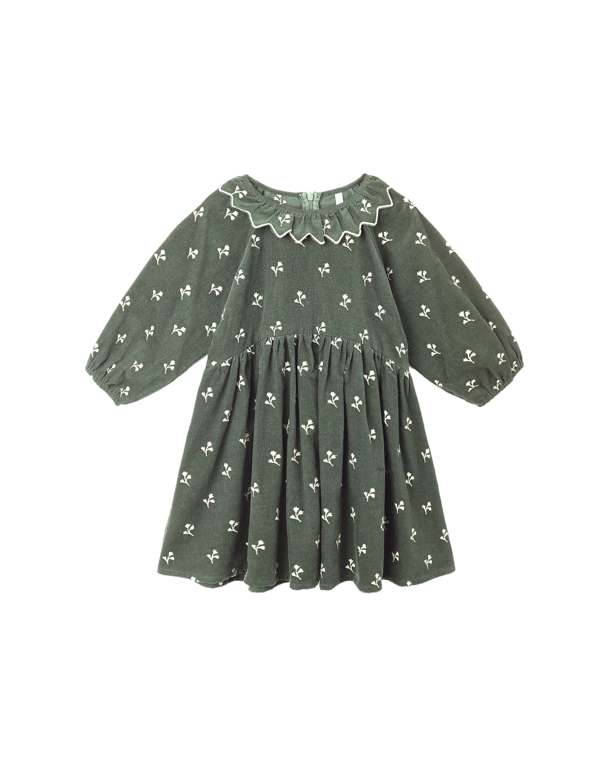 This Freya Dress dress is made of fine corduroy with playful ruffle collar and balloon sleeves. Zipper back closure.