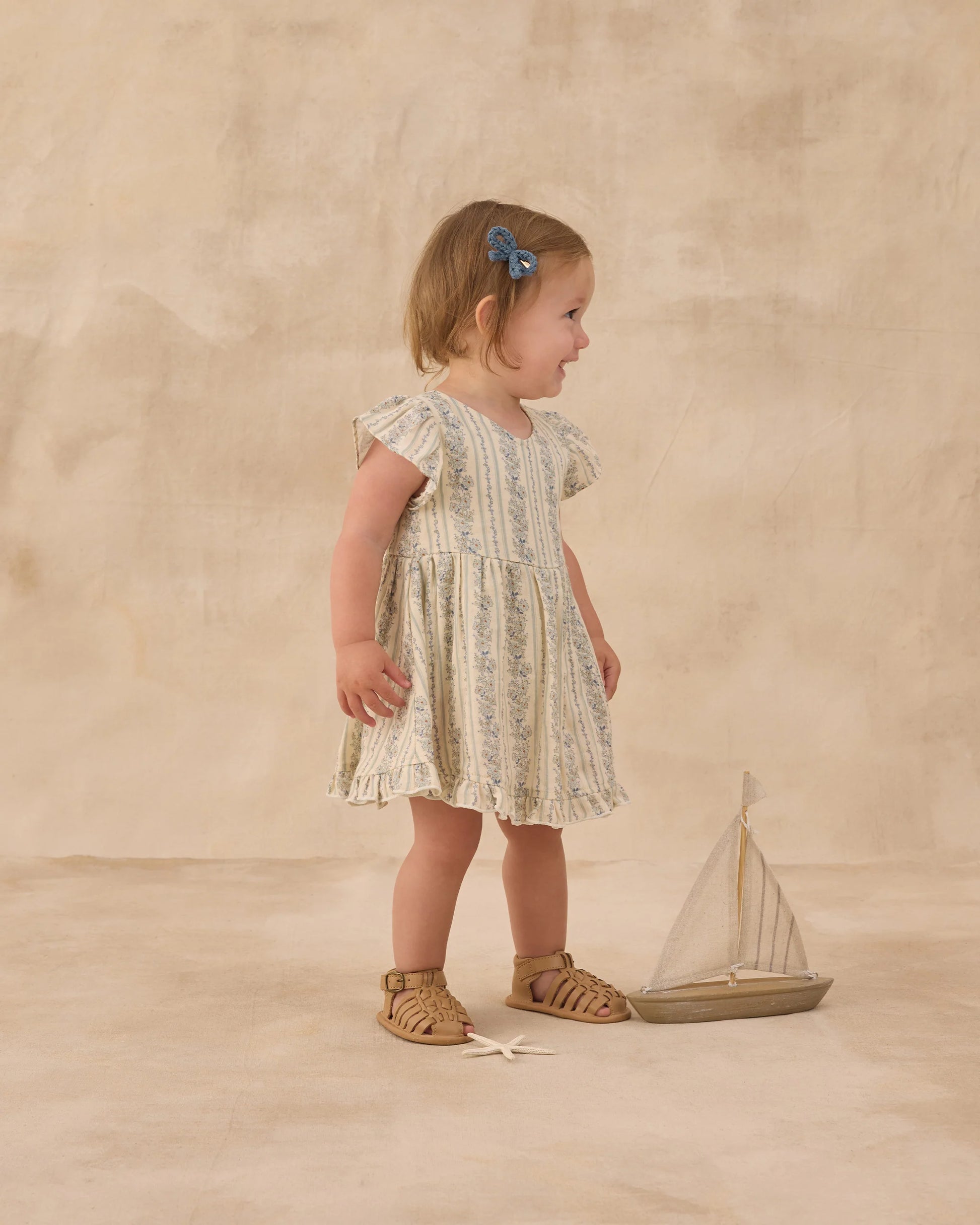 Featuring our 'blue floral' print on our 'natural' hue. This dainty floral print encapsulates spring blooms.
