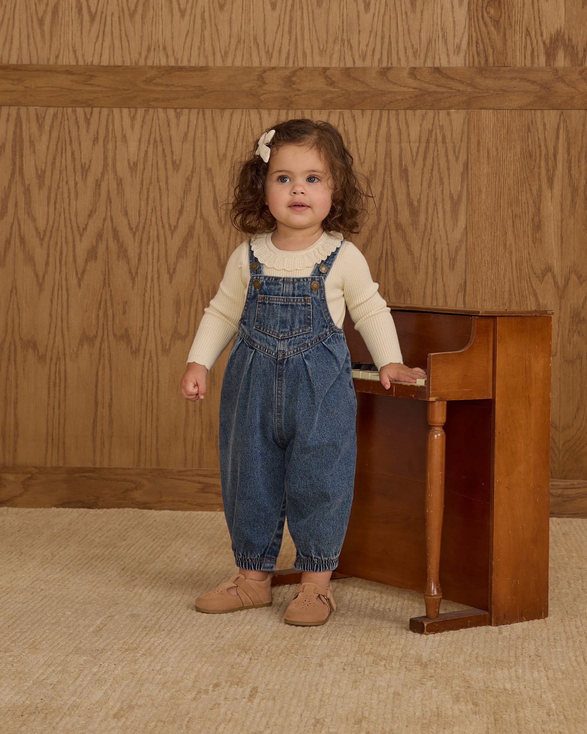 A classic look for little ones. These vintage-inspired overalls feature antique shank buttons, functional pockets, and snaps along the inseam for easy changes.