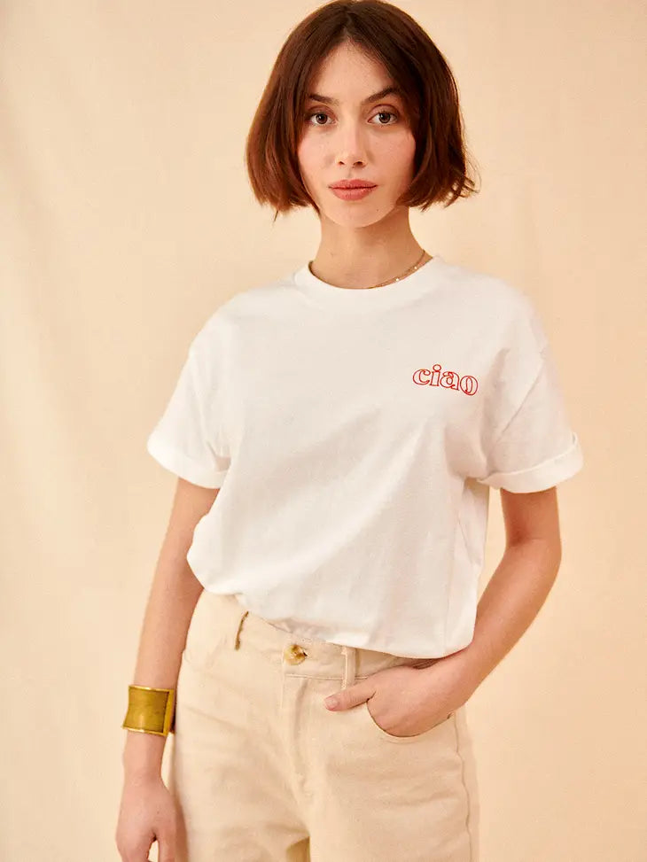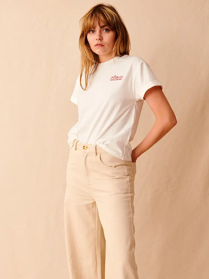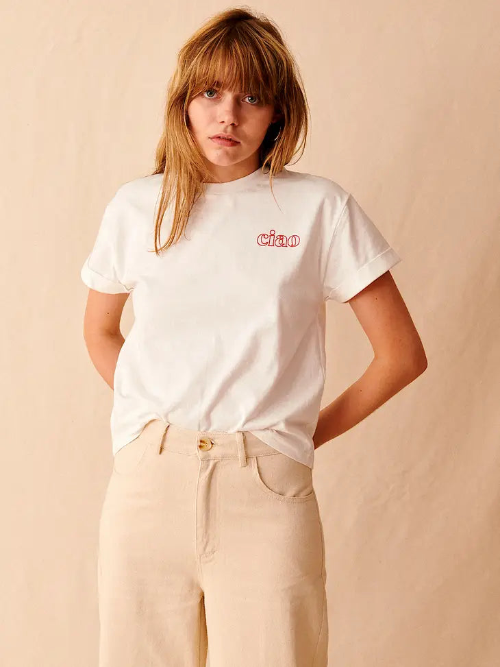Ciao Embroidered Tee - Ecru