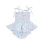 Transform your little one into a delightful summer vision with our Smocked Bubble with Skirt in Pretty Seashells. This beautiful baby girl outfit combines comfort and style for a fun and sweet look. Perfect for any sunny day, this gorgeous ensemble will keep your baby cool and stylish.