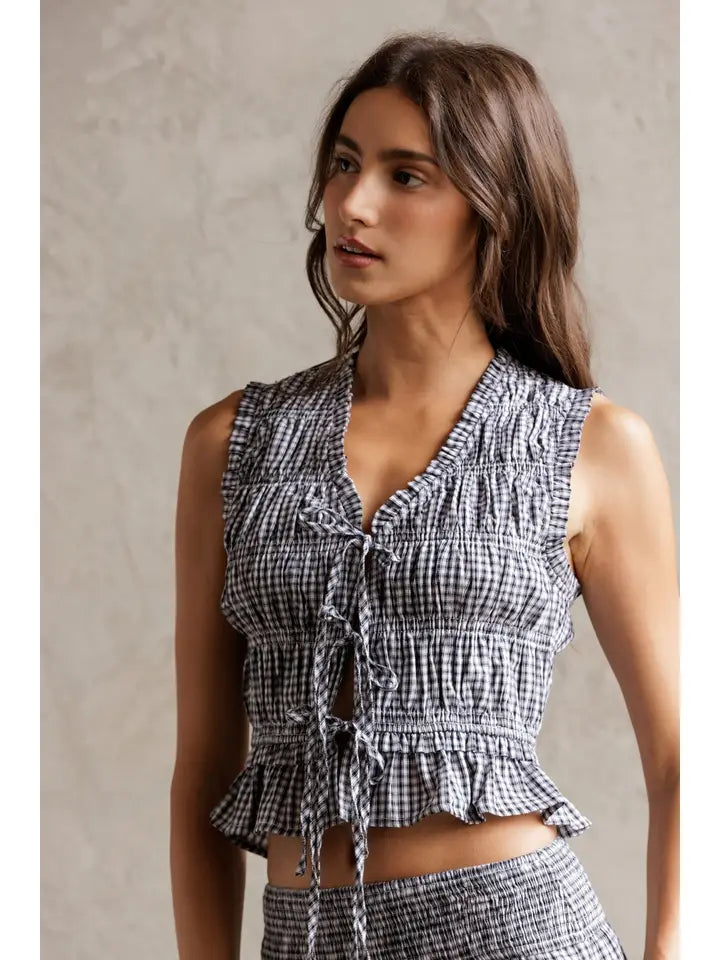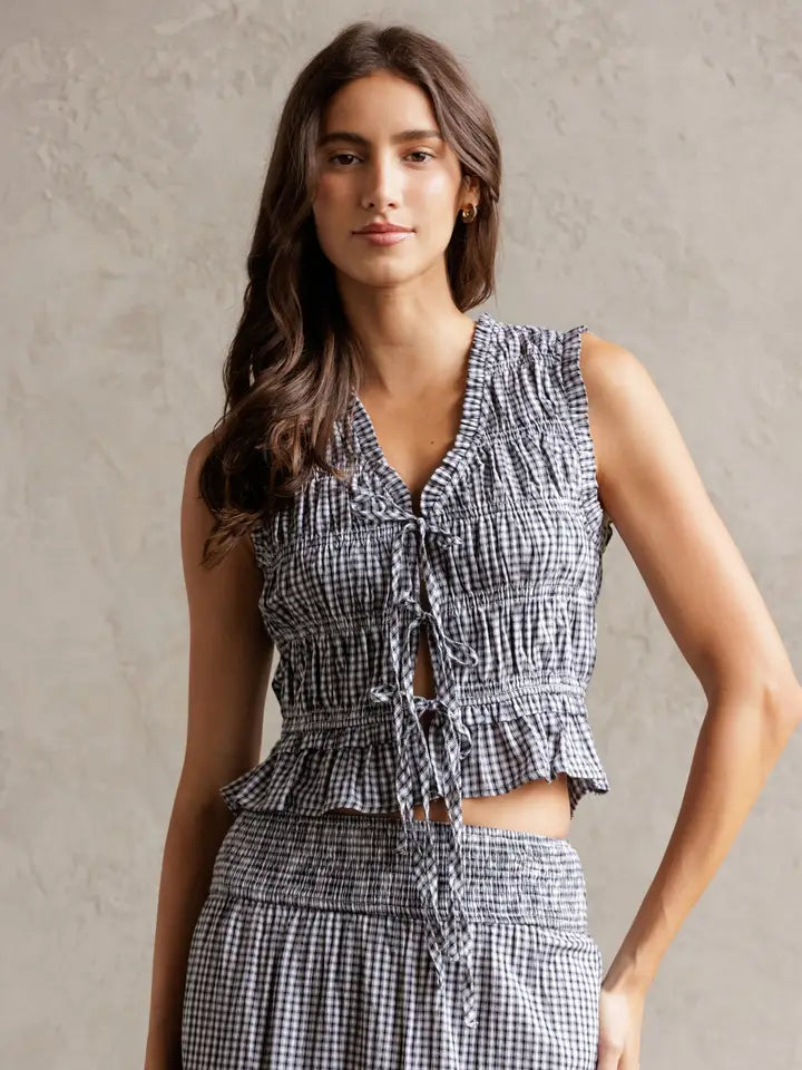 Smocked Gingham Top - Black & White