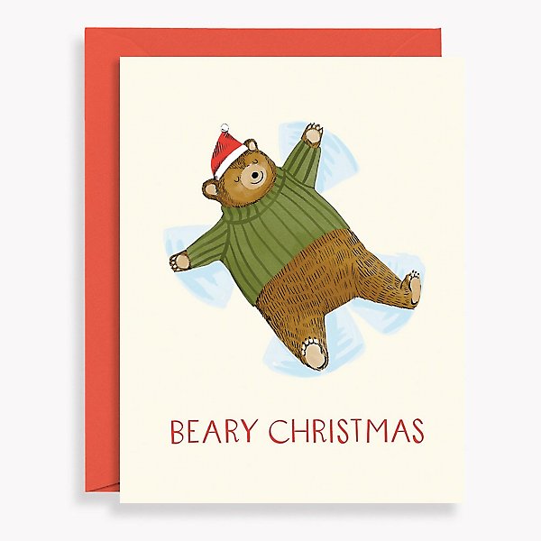 Beary Christmas and a Happy New Year! Send these sweet cards to friends and family this holiday season. Features an adorable bear in a sweater playing in the snow.