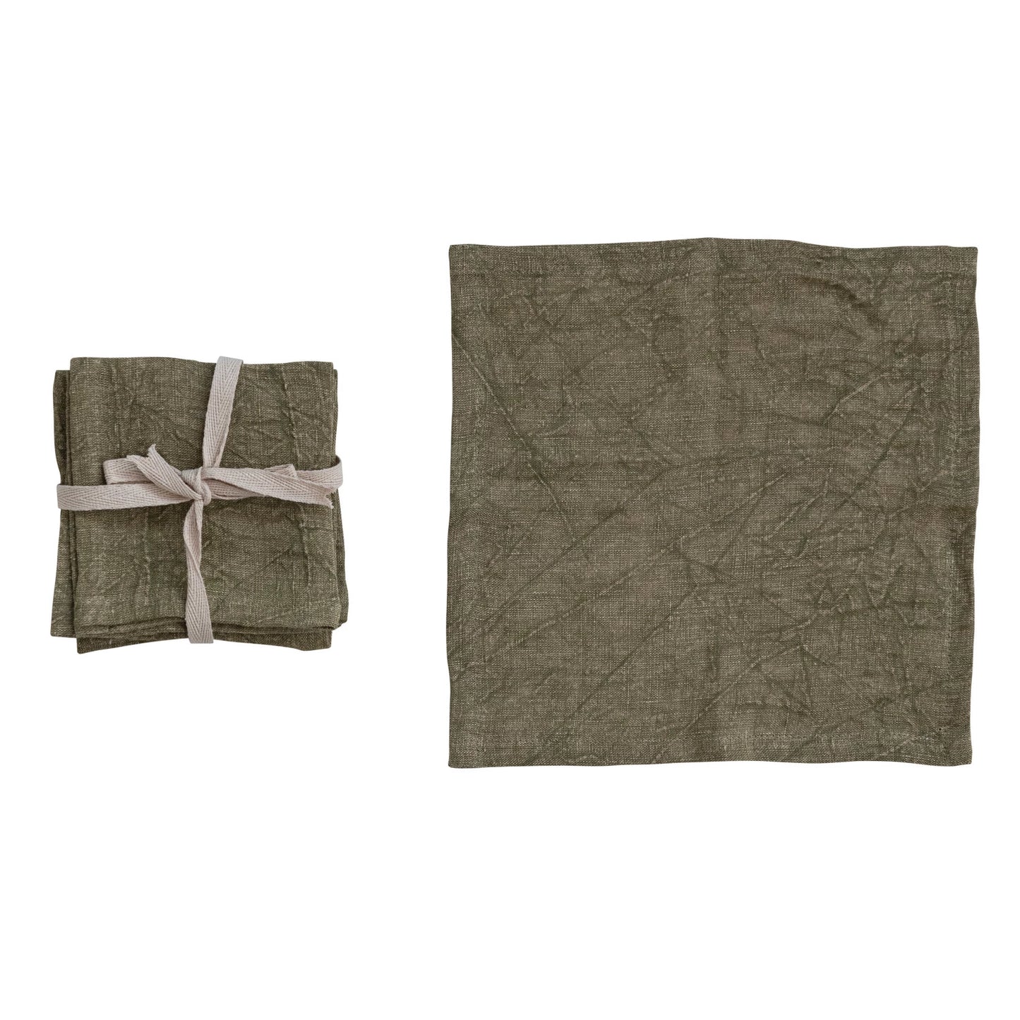Stonewashed Linen Cocktail Napkins - Green - Set of 4