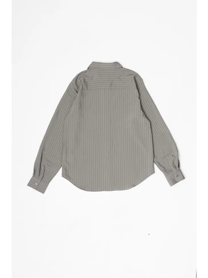 The Jill Top - Pinstripe Button-Down - Olive Grey