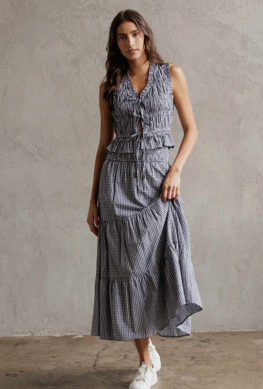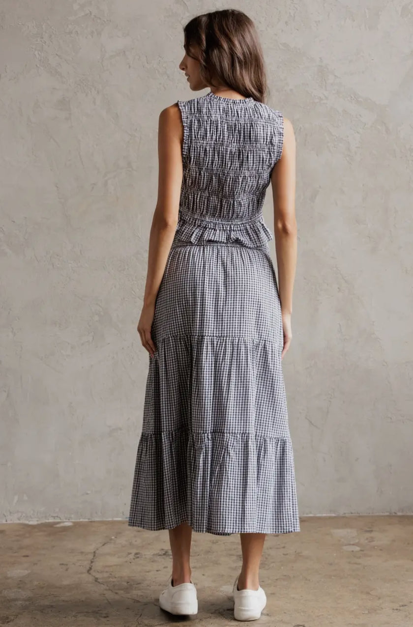Tiered Midi Skirt - Black & White Gingham