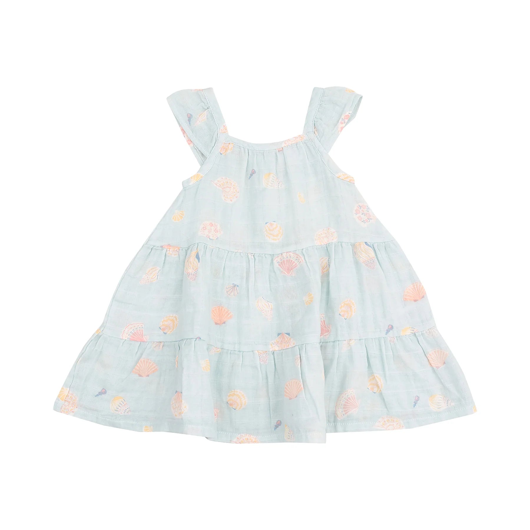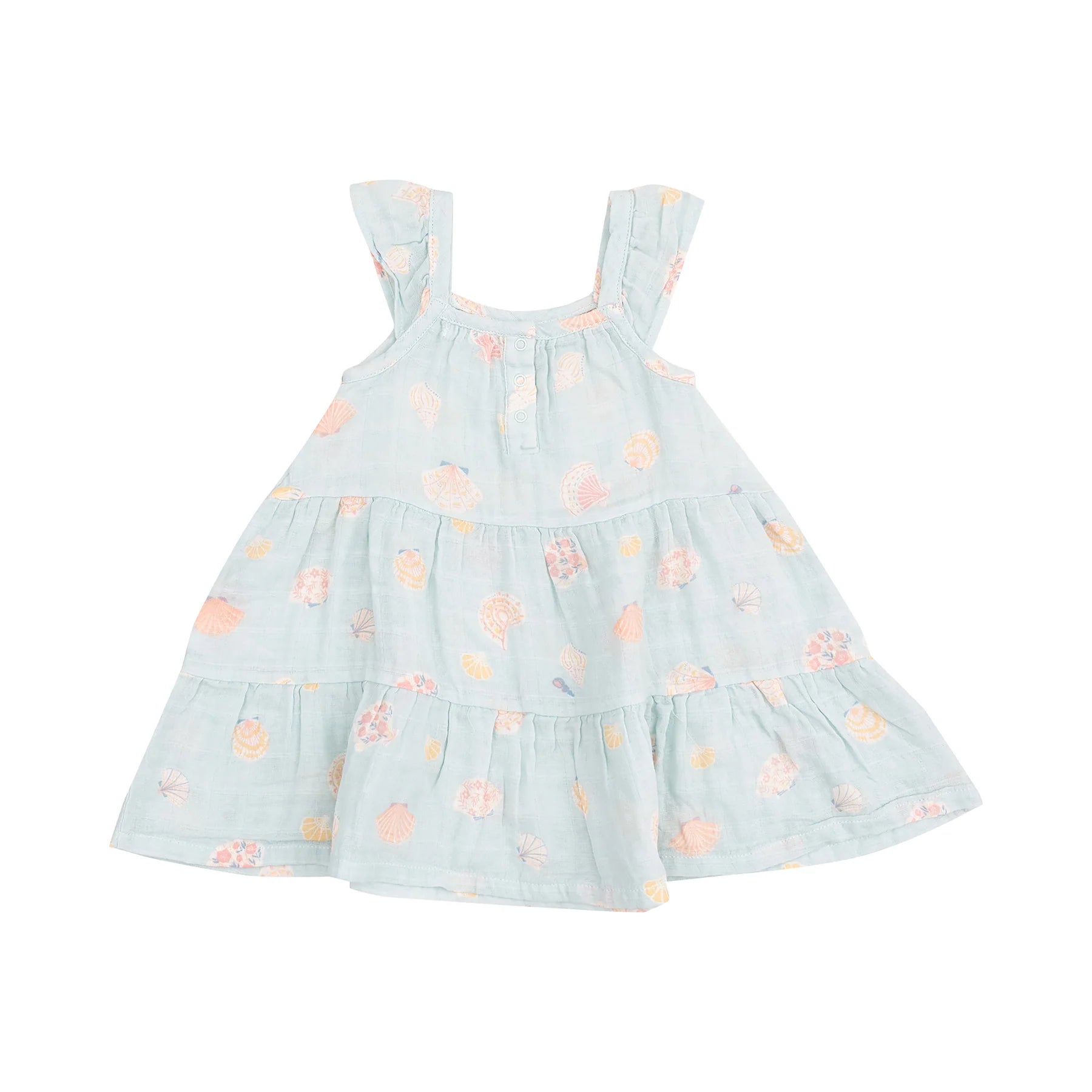 This adorable Twirly Sundress in Pretty Sunshells is the perfect addition to your little girl's summer wardrobe. With its cute and sweet design, she'll love twirling in the sun all day long. Made for summer fun, this dress is a must-have for any stylish girl.