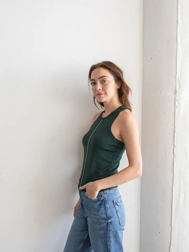 Expertly crafted for versatility, the Victoria Tank in Hunter Green is a basic yet flattering addition to any wardrobe. With its modest design, this tank can be dressed up or down for any occasion. Made with high-quality materials, it offers comfort and style in one.