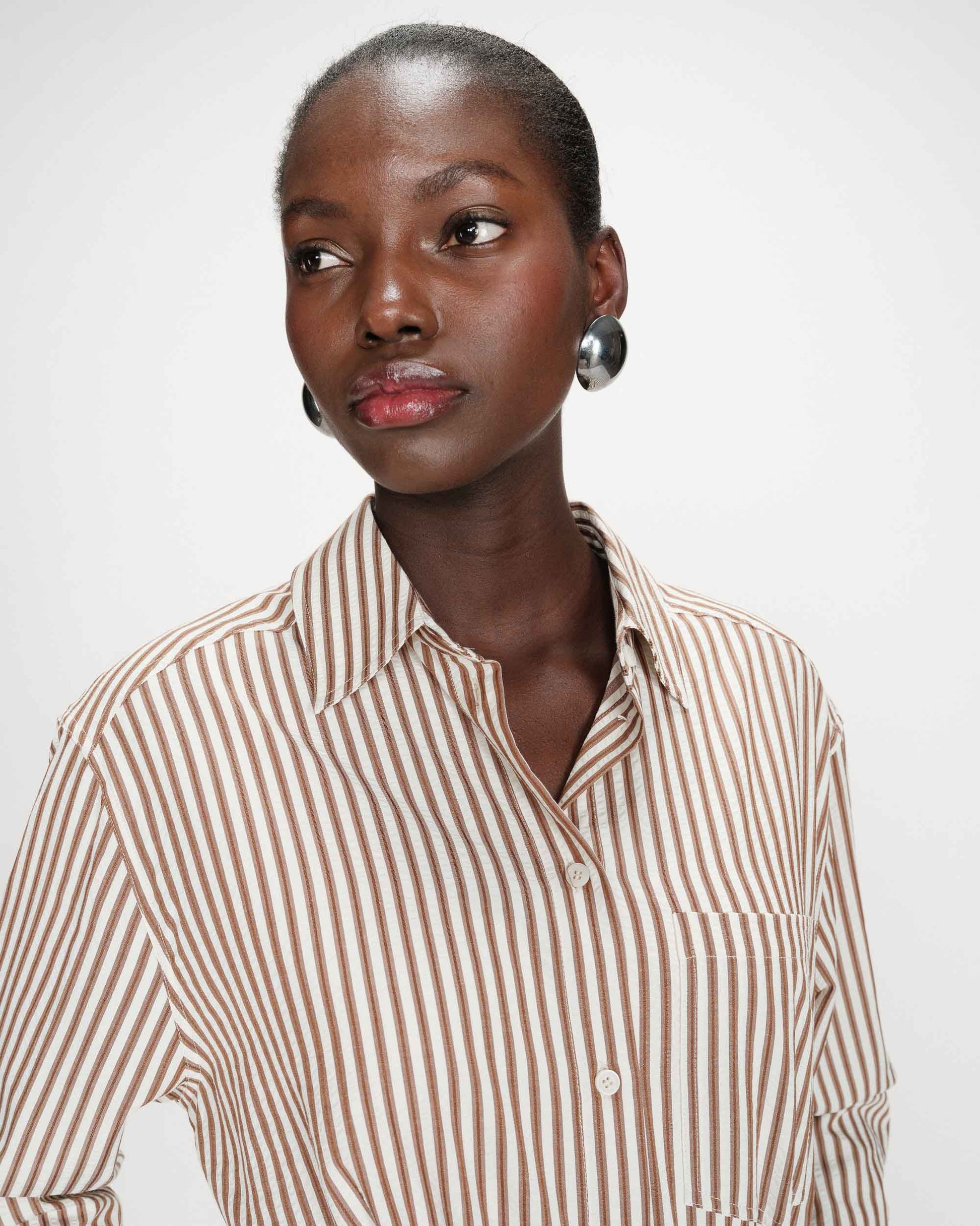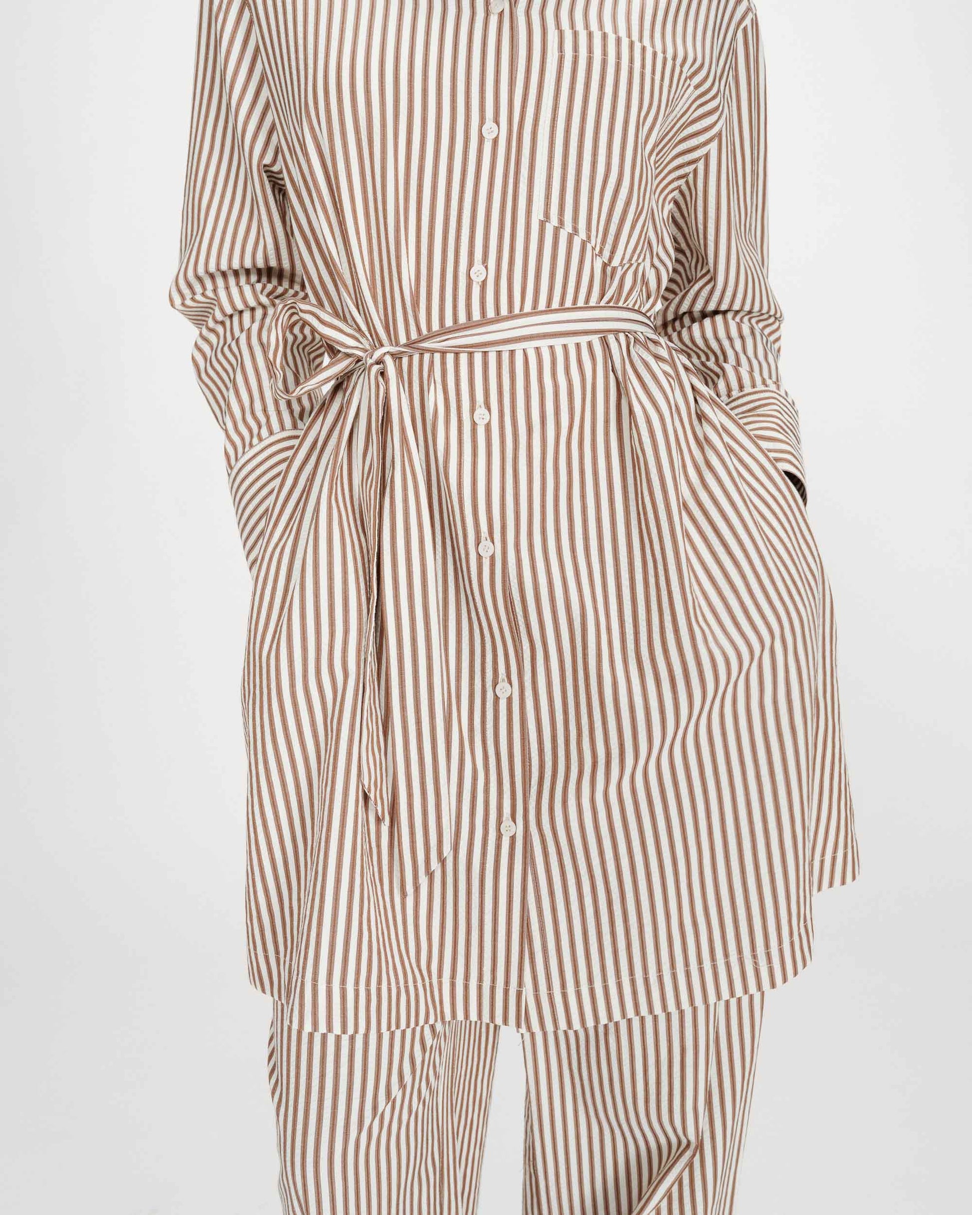Made from a striped fabric, the VISERY shirt dress is a timelessly elegant piece. The classic shirt collar and straight cut are paired with a detachable waist belt that shapes the silhouette. The VISERY short dress features a buttoned front placket and a patch pocket on the left chest.
