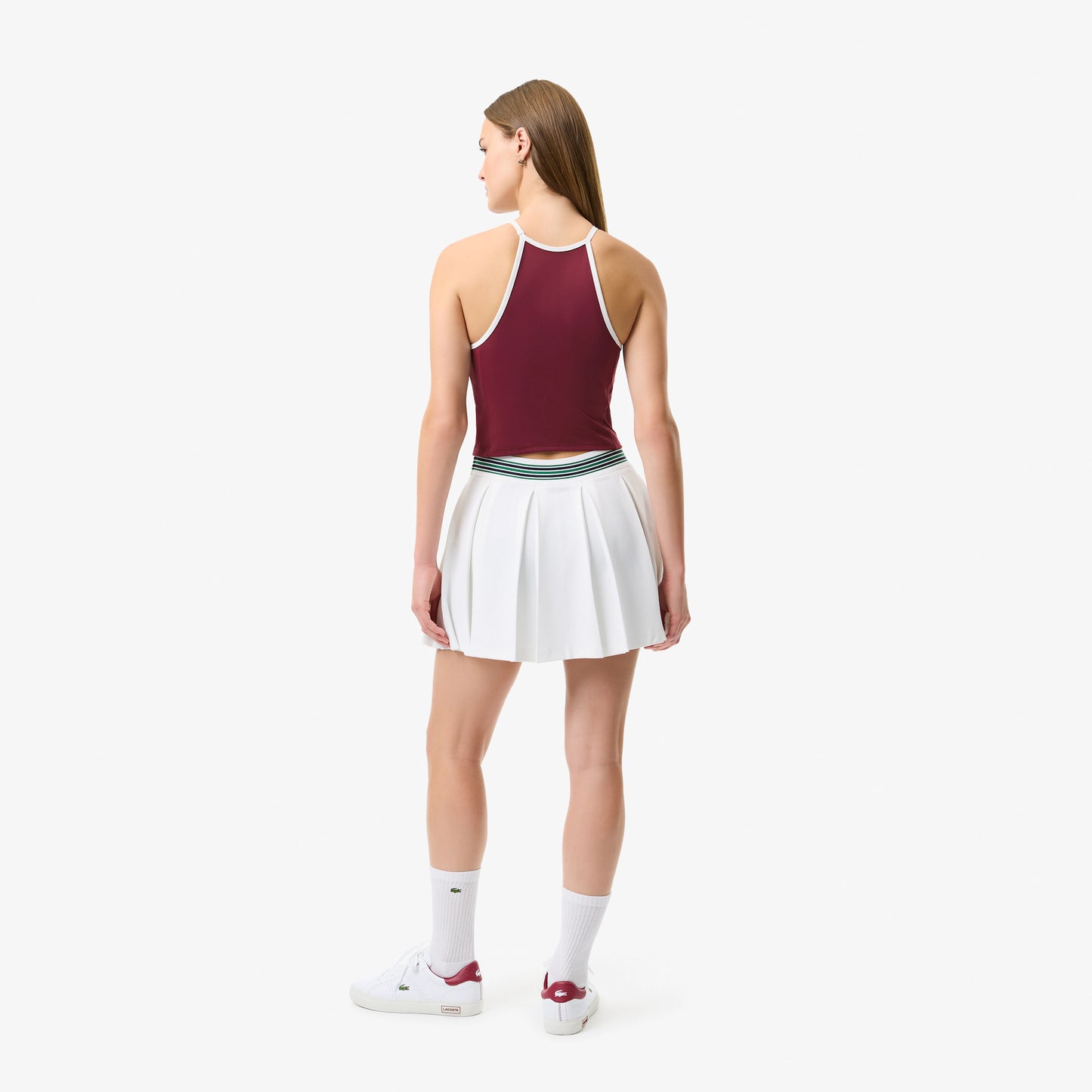 This tennis skirt, tried and tested by Lacoste players, features wide, elegant pleats, stretch fabric for freedom of movement, and Ultra Dry moisture-wicking technology. A blend of Lacoste style and technical prowess.