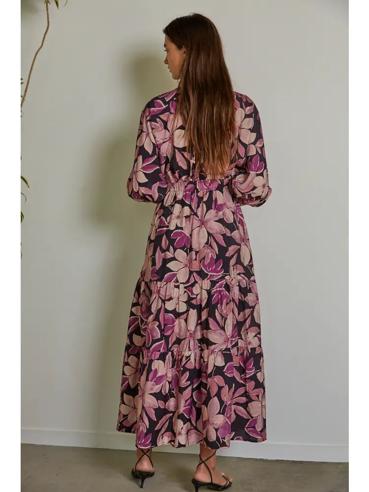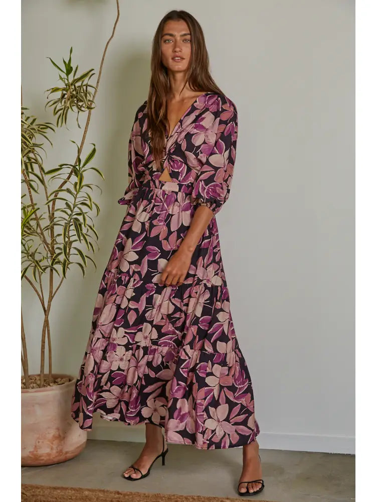 Introducing our newest addition to the fall wardrobe - the Woven Floral Tiered Midi Dress in a gorgeous shade of violet. The tiered design offers a stunning silhouette, and the floral pattern adds a touch of femininity. Perfect for any occasion, this dress is a beautiful must-have.
